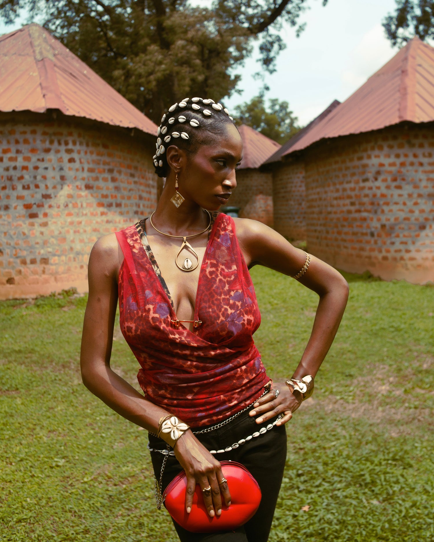 Each piece in this collection reimagines that history — from real cowrie shell details to custom cowrie-shaped hardware — brought together through contemporary streetwear design.